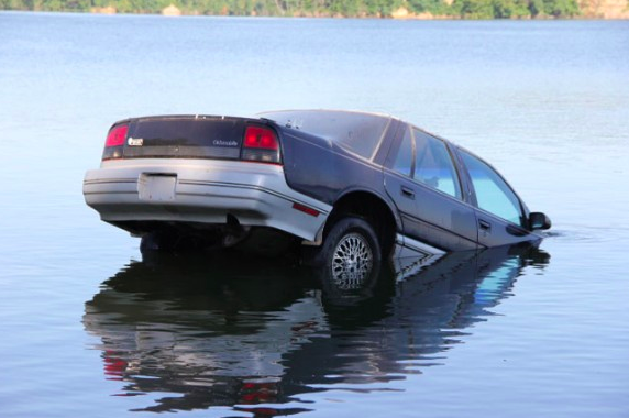 If your car is sinking in water, DO NOT try to push the door open! The door won’t budge because of the pressure of the water, and you will find yourself panicking. Instead, roll your windows down and swim out through them.