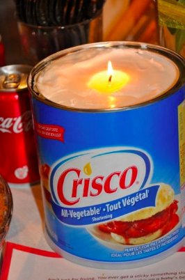 You can place a wick in a container full of vegetable shortening to act as a makeshift candle. The shortening will melt kind of like the wax in an ordinary candle. The best part is it will last for hours!