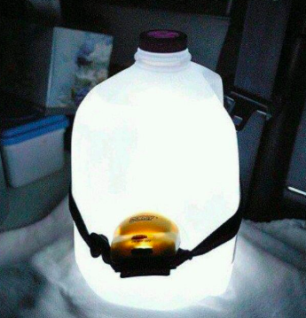 If you need a little light, make your own lantern with a water jug and a headlamp. Secure the lamp onto the jug with the light facing inward. It will light up your dark night right away!