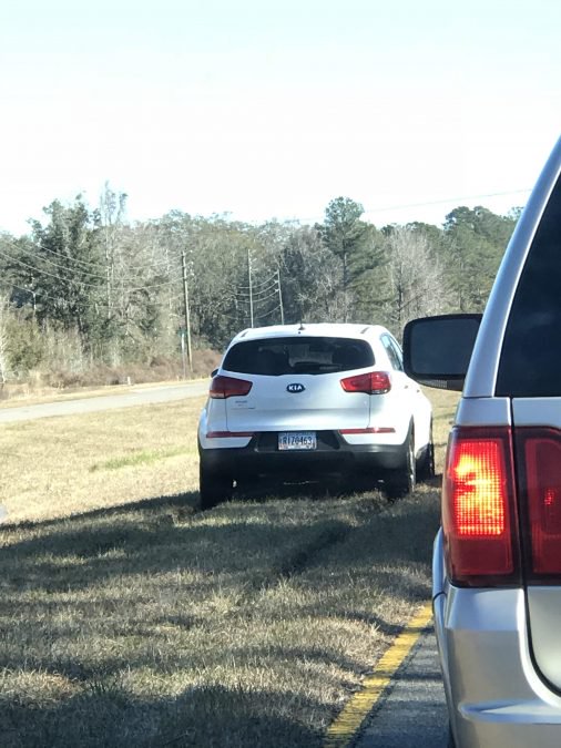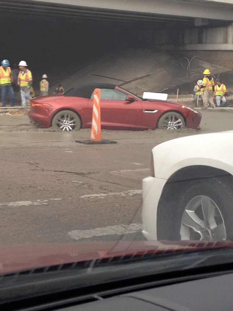 This is what happens when you decide to drive over the median to avoid traffic after five days of rain.