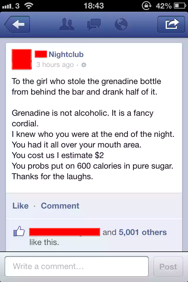 The girl who stole what she *thought* was an expensive bottle of booze.