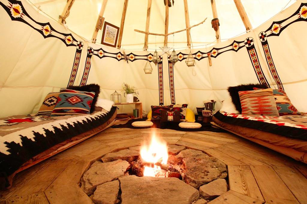 The Bellfire Tipi in Meeker Hollow is the perfect place for stargazing. There’s a gorgeous firepit inside of the tipi along with custom-made furniture. There are two sleeping spaces that accommodate four guests. You can book your stay and learn more about the property here.