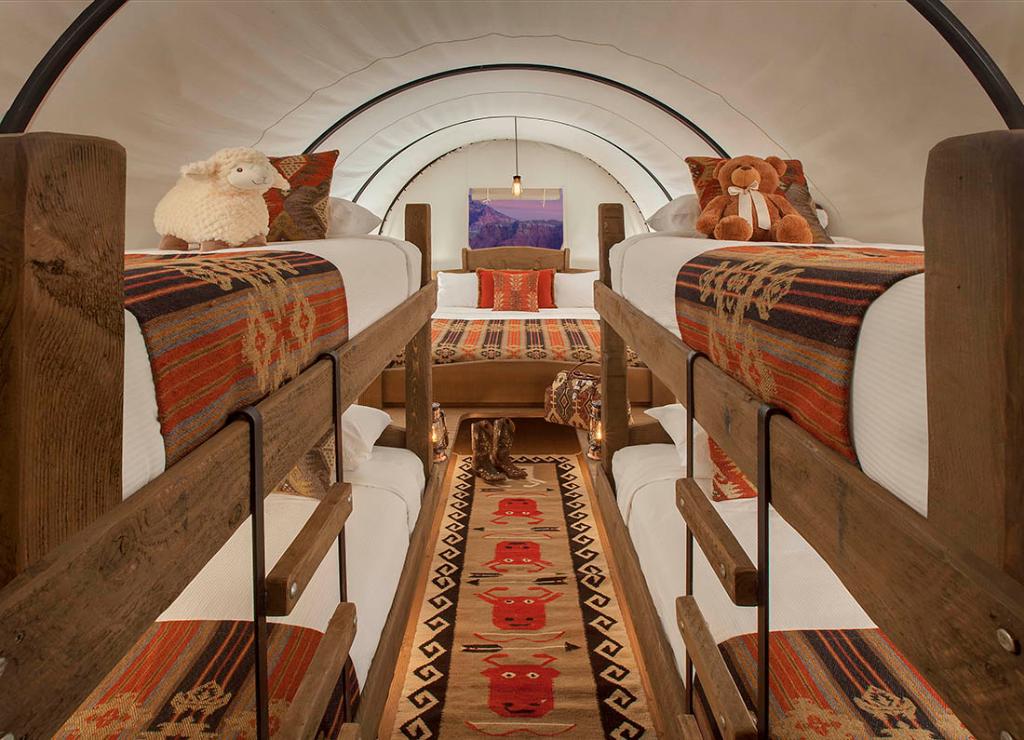 This camping site allows you to stay in a Conestoga wagon, how cool is that! Each wagon has a king-sized bed in addition to two twin bunks. These look like wagons for the pioneer ages but they are fully air-conditioned with private bathrooms. Book your stay here.