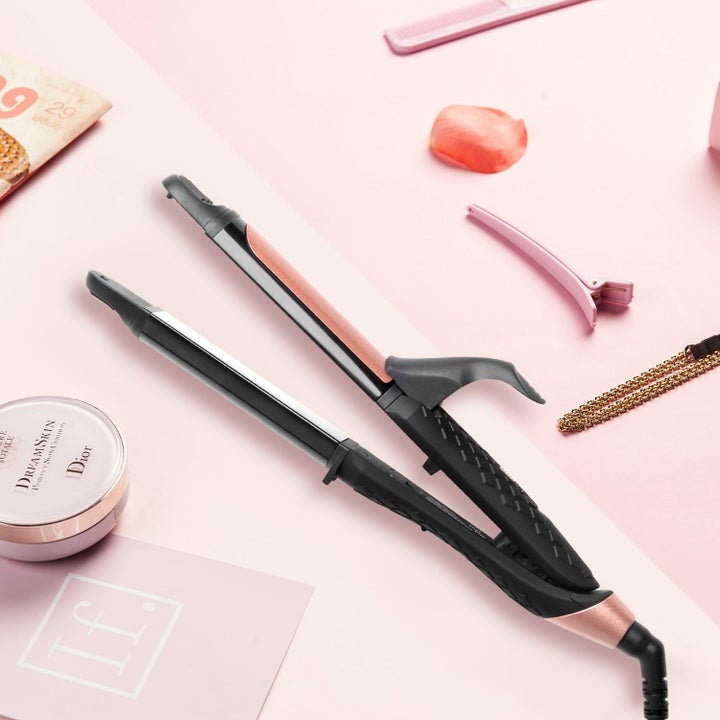 Promising review: “Don’t be fooled by the tiny price or size, this little baby is serious. If you are looking for a small travel option rather than lugging your big straightener and giant curling iron around the world, than I think you’ll love this. It performs really well, turning my frizzy wavy hair into a smooth and sleek style. The curling iron option also creates shiny, silky lasting curls! Its easy to transition between both. I also like the grippy handle and the fact that the curling iron clip is a different color than the straightening bars because that helps me see how I should be maneuvering it around. The voltage goes up to 240m so you are good using it internationally without a converter (but you will need an adapter just to fit it into various foreign outlets). At this price, definitely give it a try and flaunt your tresses abroad.” —Christine
