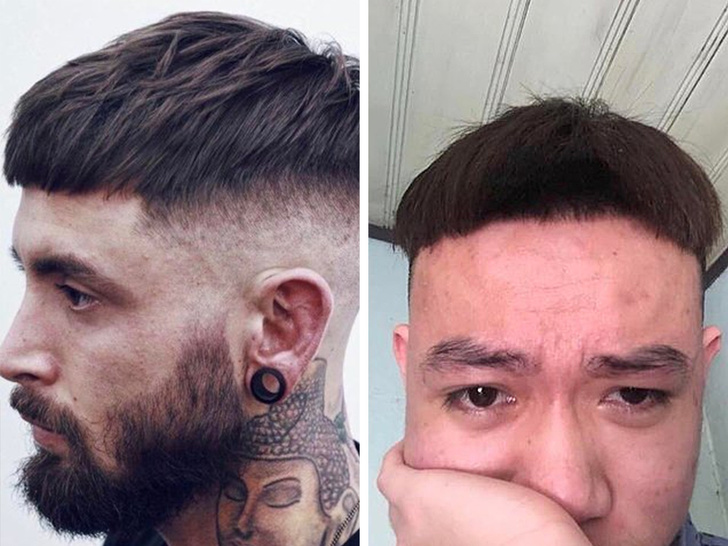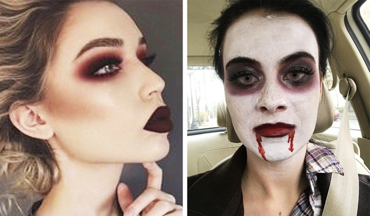 35. “$60 ’professional’ Halloween makeup — I asked for the photo on the left, with just a little fake blood. On the right is what the makeup artist gave me.”