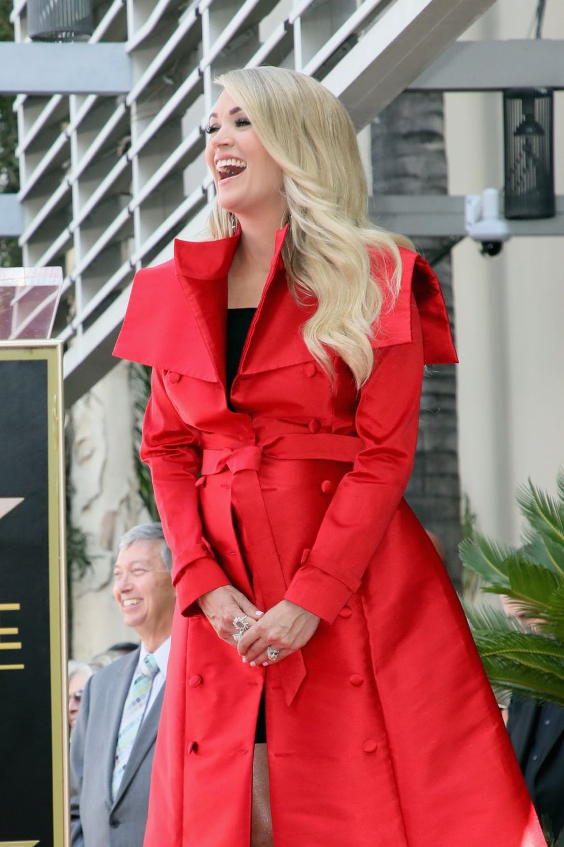 Here’s the singer slightly hiding her baby bump with a gorgeous red trench coat that just screams “look at me!” She rocked this look in September 2018, while getting her very own star on the Hollywood Walk of Fame: a very important moment for the 36-year-old singer, as it is every artist’s dream to have their own spot on this legendary sidewalk. According to Popsugar, the country singer was very excited, and a couple of tears even made an appearance. While it is truly a great moment, we also bet some of those pregnancy hormones influenced Carrie to a bit extra-emotional that day.