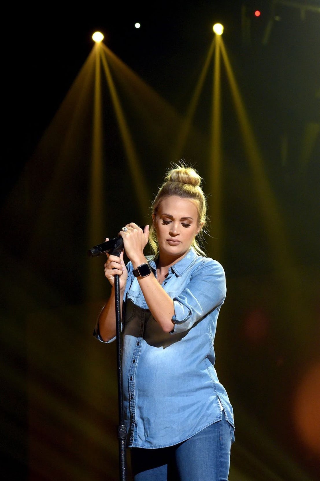 Carrie had plenty of performances during her pregnancy, and before wrapping the list up, we wanted to include one more. This look is fun, sparkly and totally up Carrie’s alley! She was performing at Spotify’s Country Live Series in New York City last summer, and while her baby bump wasn’t too visible yet, the pregnancy glow was definitely there! Being pregnant and in the spotlight surely isn’t always the easiest thing, but Carrie showed us over and over again that for her, maternity fashion is even more fun than regular looks. And if there’s one thing pregnant ladies take away from this list, it should be that!