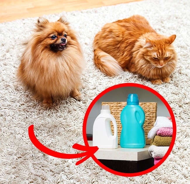 Sprinkle the carpet with a 1:1 water and softener solution, and easily remove pet fur from it.