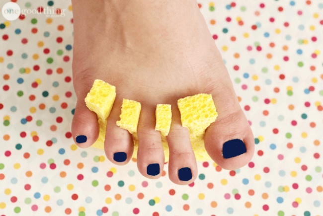 Your toes may touch each other and smudge the polish as it dries, and that’s irritating. To avoid this, cut a sponge into pieces, and place them between your toes.