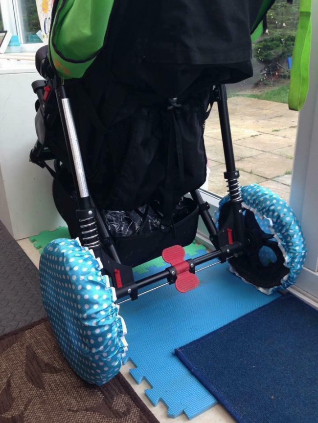 Put shower caps on the wheels of a kid’s bike or stroller before entering the house, and there’ll be much less mess inside.