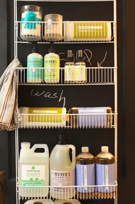 Like the slim cart, this is a great space-saving organization idea. Hang anything you use often from your door so you can access it easily.