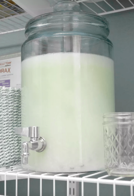 Get a beverage dispenser for your detergent to make measuring it much more simple and way less messy. It even makes the place look more ornate.
