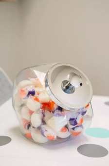 Put detergent pods in a candy dish for a classy and effective way to organize your laundry room. Whenever you need some detergent, just grab a pod out of the dish.