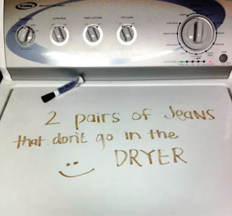 If someone is helping you out with your laundry, leave them tips so your clothes aren’t damaged. A dry erase marker works great on most washing machines.