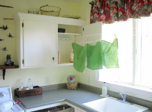 Drying racks save energy, and they are less harsh on your clothing. Get yourself a pull-out/fold-up drying rack, and you’ll save electricity AND space.