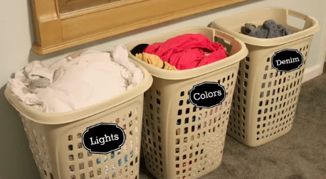 Instead of sorting out your clothing when it is already time to wash, save yourself time by sorting before hand. Having designated hampers for each color can really take the stress out of doing laundry.