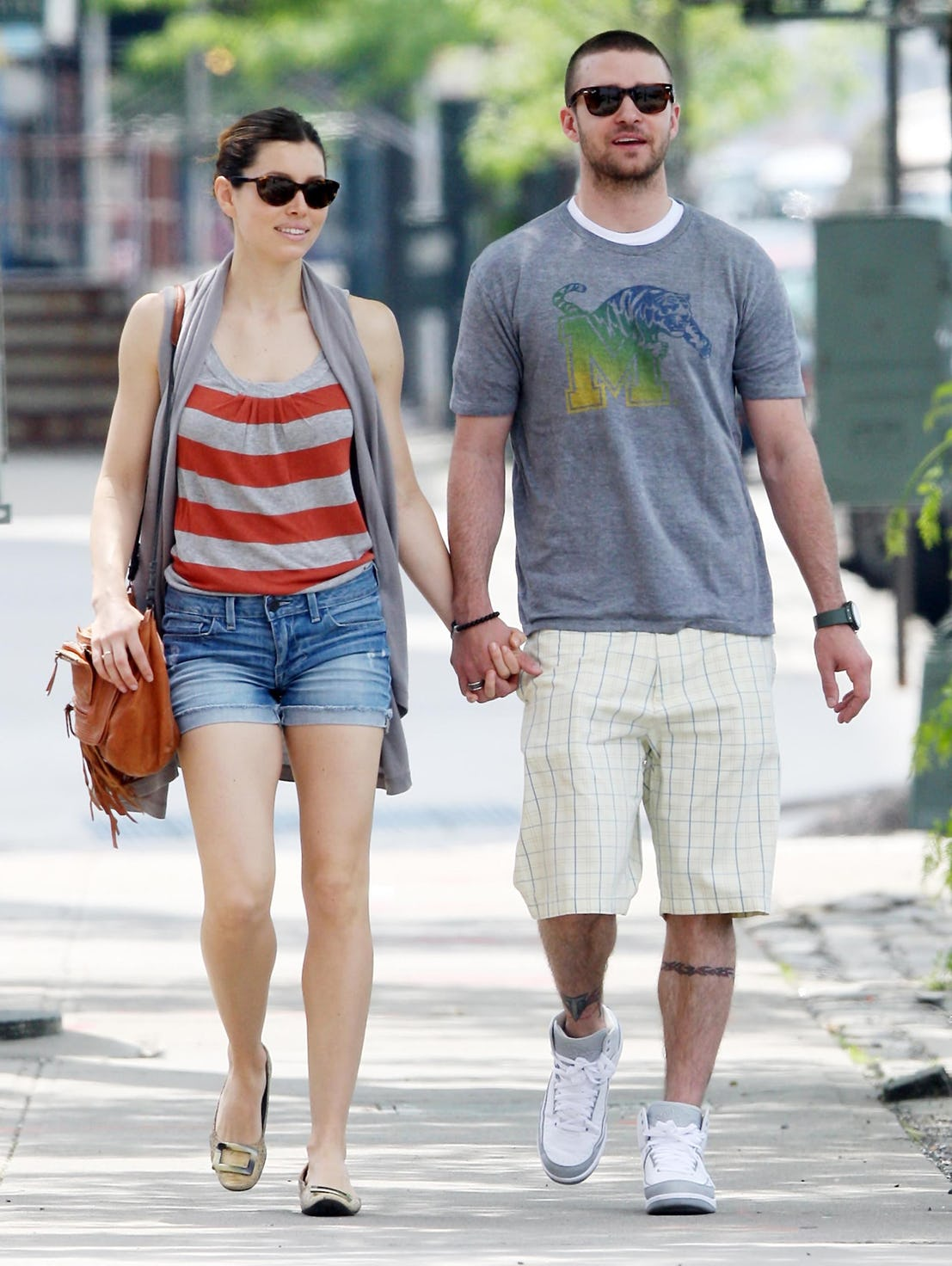 In this photo, it’s hard to tell how famous Justin Timberlake and Jessica Biel are based on how normal they look. But if one thing is for sure, it’s that Jess always has great style on and off the red carpet. The actress, who shares her son Silas with her husband, rocked an orange and grey striped tank with her pair of shorts. Her grey vest added detail to the otherwise casual outfit, and her nude flats and shoulder bag pulled the whole look together.