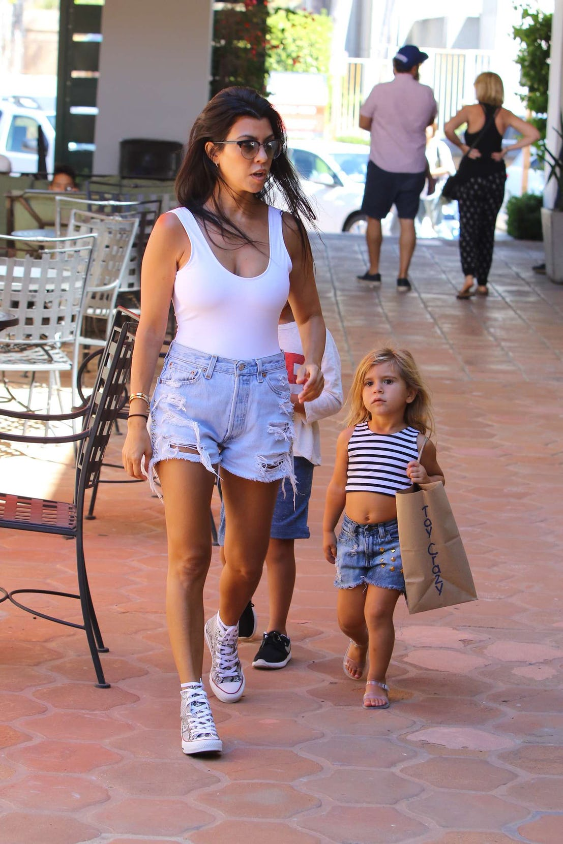 Kourtney Kardashian got loose in a pair of denim mom shorts while spotted out with her eldest children, Mason and Penelope, whom she shares with her ex-partner Scott Disick. The reality star’s look may be simple, but it was overall sultry. Her white bodysuit showed off her lean figure, while her white chucks still kept it feeling casual. We love that her daughter was also wearing a pair of jean shorts similar to her mom’s!