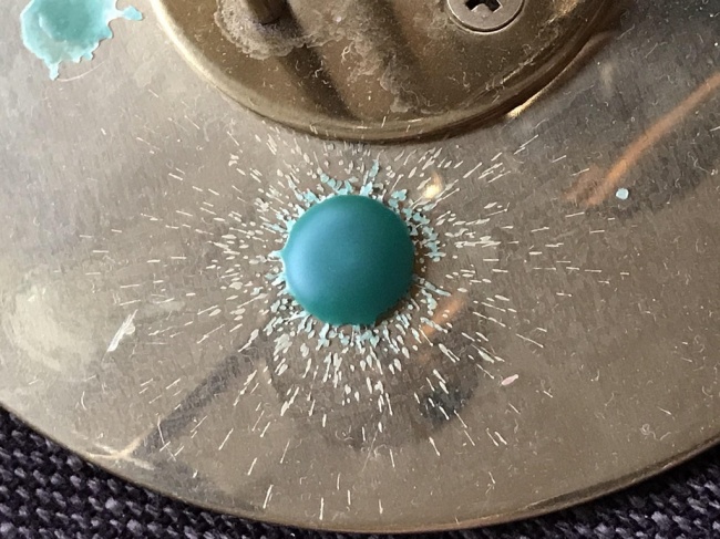 I dispensed some dark green paint into a gallon and made a perfect teardrop.