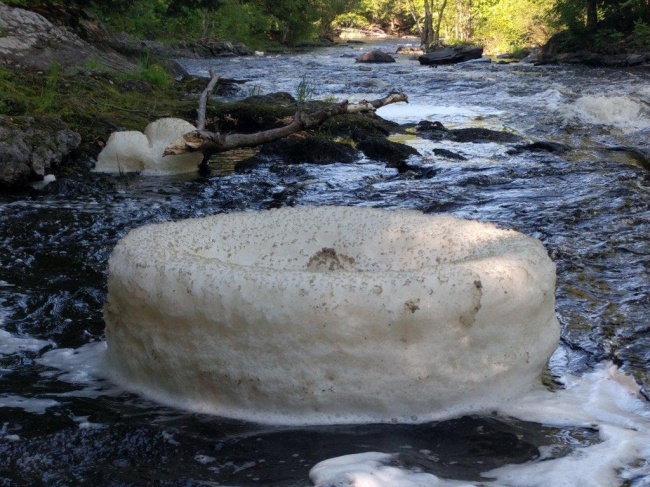 The whirlpool in this stream collected foam and created a perfect circular foam wheel.