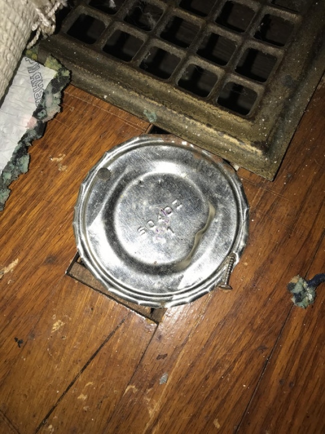 Los dueños anteriores usaron una lata para reparar el piso