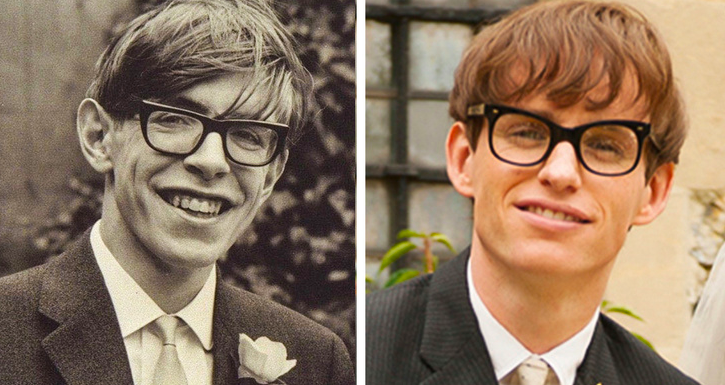 The glasses definitetly sell Eddie Redmayne’s portrayel of Stephen Hawking in The Theory of Everything, but theres no denying the similarities in the eyes and facial structure.