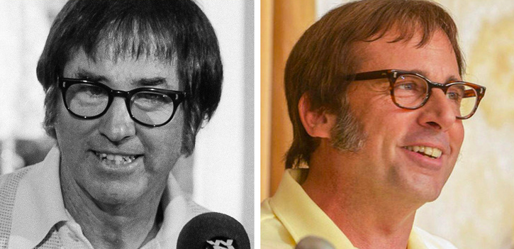 Steve Carell made becoming another person look easy. The similarities these two had already were enough to make them look related. With a new hairstyle, sideburns, and thick rimmed glasses, Carell had the look down.