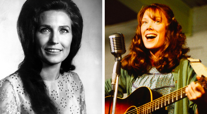 Sissy Spacek not only perfectly embodies the queen of country Loretta Lynn through her performance in Coal Miners Daughter, but looks just like her.