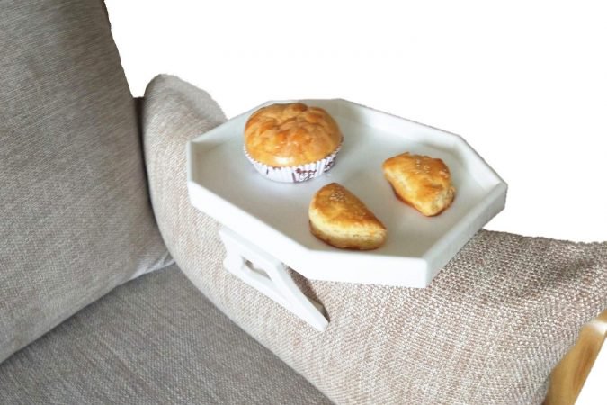 However, if you have one of these table trays that hook directly onto your armrest, your life is much easier. You don’t have to worry about balancing a plate on your lap or placing it far away on the coffee table — just cozy up next to the tray that’s seated right next to you! This is a must for your next party. And your next Netflix binge sesh.