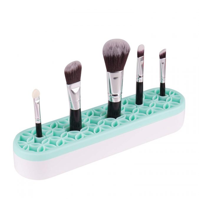 It’s pretty unsanitary to store your brushes in a bag where they touch each other (and all the makeup containers). This brush holder features a bunch of spaces formed with flexible silicone that will grab the brush handles and keep them propped up. There are three different sizes of holes that should work on even your tiniest (and largest) brushes.