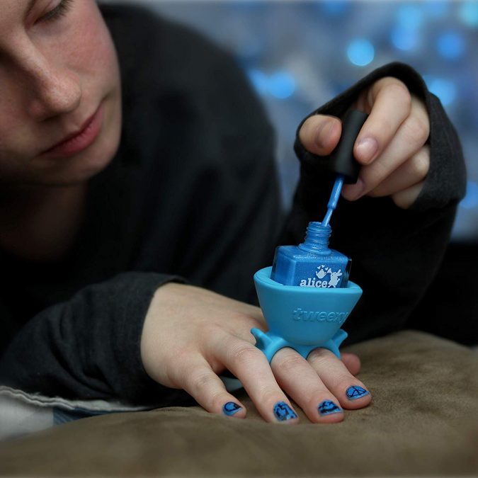 You shouldn’t have to sacrifice an awesome manicure just because you don’t have a flat surface to put your nail polish bottle. Whether you’re sitting on a couch or bed, or even in a moving vehicle (not one that you’re driving, obviously), Tweezy will hold your nail polish bottle firmly and keep it right where you need it while you do your manicure magic.