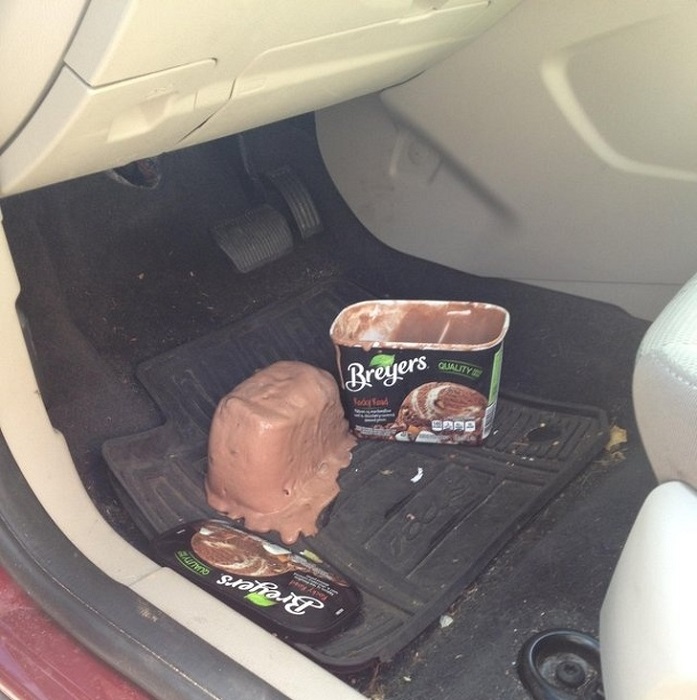 I don’t know about you, but I can’t personally imagine a worse day than this. I don’t know what kind of swerving caused the ice cream to vault to the floor AND ripped it open, but I don’t want to think about it. It’s too horrible.