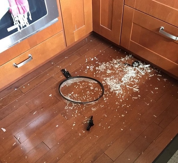 I guess on the bright side, nothing is on fire in this kitchen. On the downside, they won’t be doing any cooking in the near future. Do we actually want to know how they managed to break the stove?