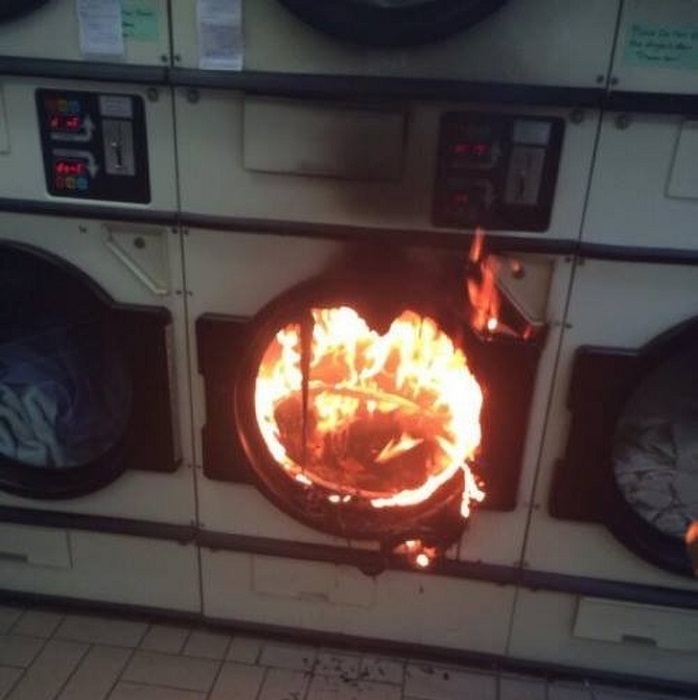 Too many people play fast and loose with cleaning out the lint trap in the drier. We always think it will never happen to us! Unfortunately, this person now needs a new drier, new clothes, and a fire extinguisher.
