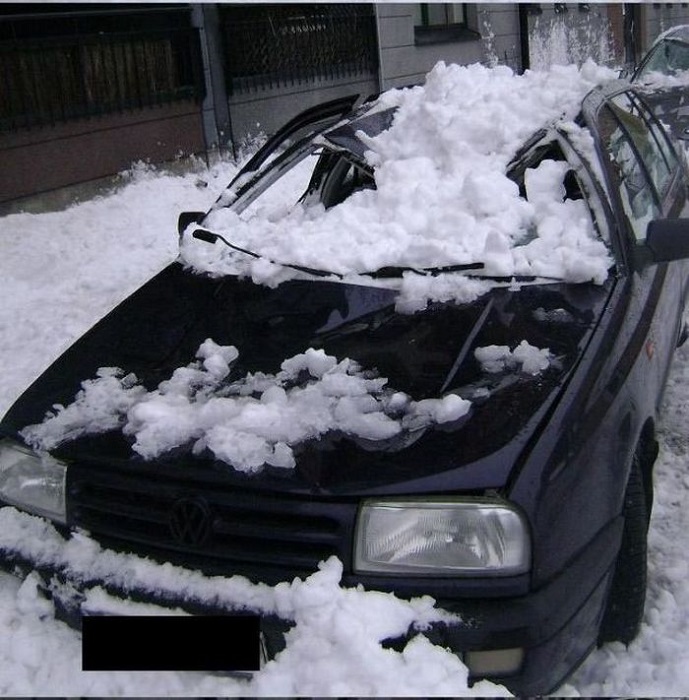 Winter is a dangerous time, with snow accumulating on roofs. But there isn’t usually enough snow to do damage like this! This poor person is the definition of being in the wrong place at the wrong time.