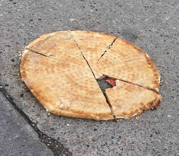 This is yet another picture that says a thousand words — and they spell a tragedy. Nothing could be worse than getting a fresh, hot pizza and then immediately dropping the entire thing on the dirty ground.