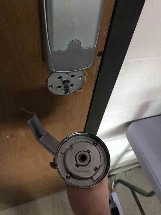I’m assuming this person took a picture to prove to their professor why they didn’t make it to class that day. Hopefully, it didn’t count against them, since there was no earthly way to foresee losing their door handle.