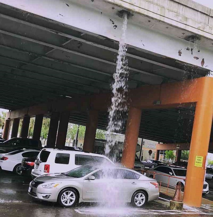 Trying to find a parking spot can be a nightmare. Unfortunately, this person didn’t choose wisely. They’re paying the price with an absolute deluge of water beating away at their car.