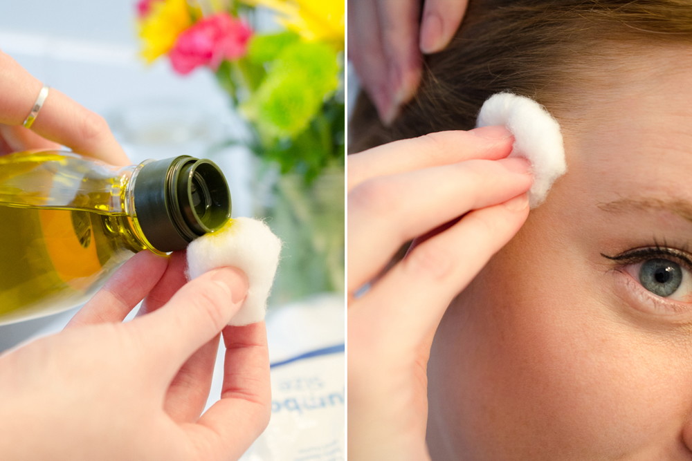 Hair dye stains can leave you looking like you are wearing a bad wig. Use olive oil to get rid of hair dye stains. Just dab some on a cotton ball and rub it over the stains for a few minutes. If the stain is stubborn, let the oil sit for a while before you wash off.
