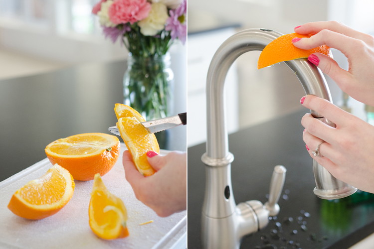 Orange peels will also get the job done. This method works great for getting hard water stains off your stainless steel faucets and appliances. Just rub the orange peels right over the stain.