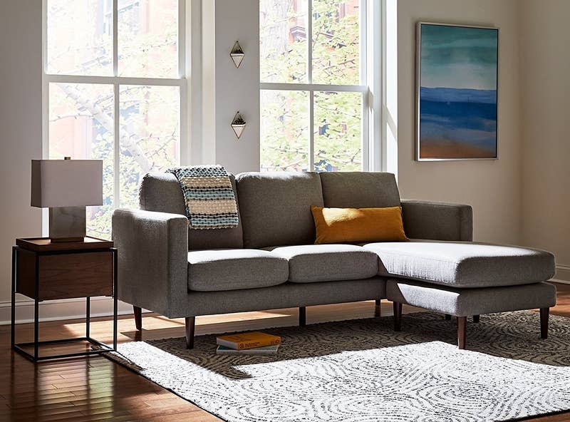 Promising review: “I went out on a limb and bought this before there were any product reviews. I needed a small chaise sectional for my den, and this was the perfect size. It offers a mid-century-ish style while still providing comfort requisite for a den (my living room couch is pure midcentury art and not comfy for sitting, haha). The couch was delivered without incident or damage and it was quite easy to put the legs on (note that there is one non-tapered leg…that one goes under the middle of the couch). The cushions are quite comfy — firm but cushy. The hubs sits on it for a few hours each night and so far, no craters or sags in the cushions at all. The fabric is quite smooth to the touch but has a slightly heathered or tweedy look to it. Overall, I am so pleased with this couch, and the price I paid was a steal.” —Heather Coburn-Schill