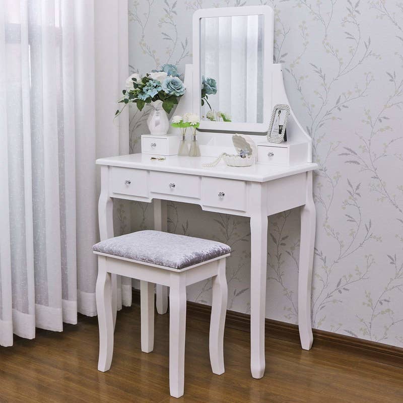Promising review: “Love, love, love!!!! This is a beautiful, sturdy, easy-to-assemble vanity. I am a very happy customer. It has plenty of drawers to keep makeup neatly organized. It only took about 45 minutes to put together because the table and drawers are delivered already assembled. The mirror is the perfect size, and there is room for decor to sit on top of the drawers.” —Jennifer Olson