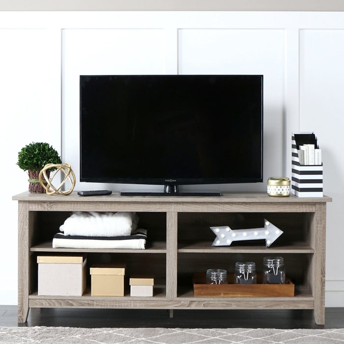 3. A media stand with four compartments so you can artfully display all those coffee table books you’ve been collecting over the years.