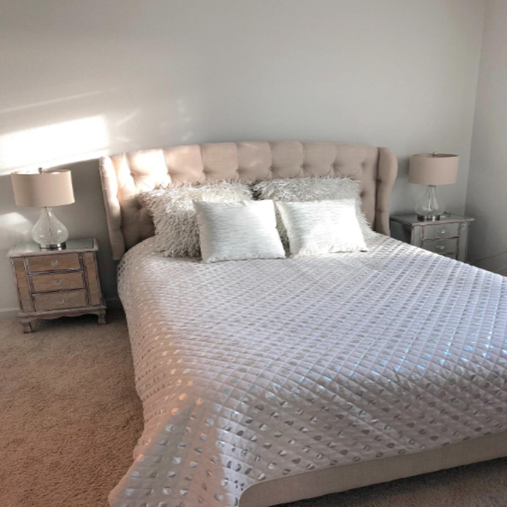 1. An upholstered platform bed to take your bed game to ~new heights~ because nobody, and I mean nobody, should sleep with just a mattress on the ground.