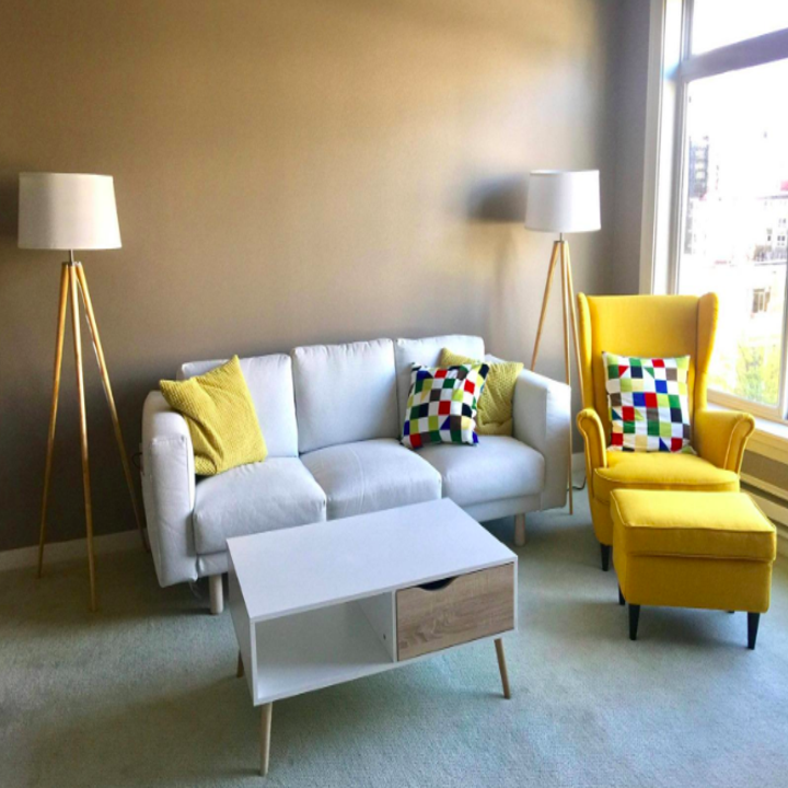 I got this lamp when I moved into my apartment because I liked the style of it, but I ended up loving how much light it added to my living room. (I only have one window that doesn’t get much light through it). It was super easy to install and has a button to turn it on and off on the ground (so you can just step on it). It has such a chic look to it that people can’t believe where it’s from.