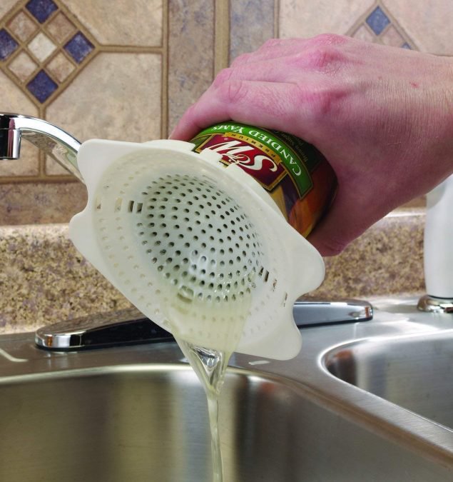 This handy little gadget snaps right onto whatever can of food you have to drain. Then, you can flip the can upside down directly over the drain rather than getting slimy can juice all over your sink. Once the can is done draining, just pop the strainer in the dishwasher.