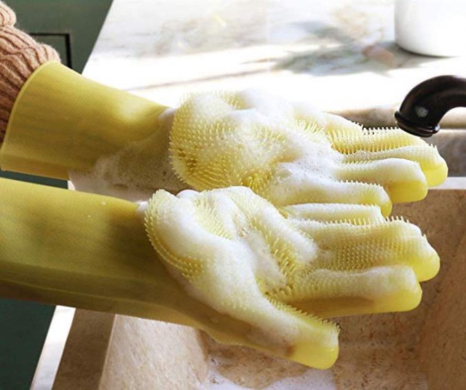 Sometimes, your hands work better than a plain ol’ sponge. That’s where these gloves come in. The palms of the gloves are covered with teeny tiny bristles that can be used to scrub dishes. Clean out a bowl with a swipe of your hand! Use your fingers to reach every nook and cranny of your most stubborn juice glass. They’re also great for scrubbing fruits and veggies!