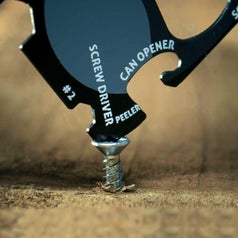 6. A wallet-size multitool that’ll not only fit into your wallet’s credit card slot, but also works as a bottle opener, box cutter, a can opener, a screwdriver, and more.