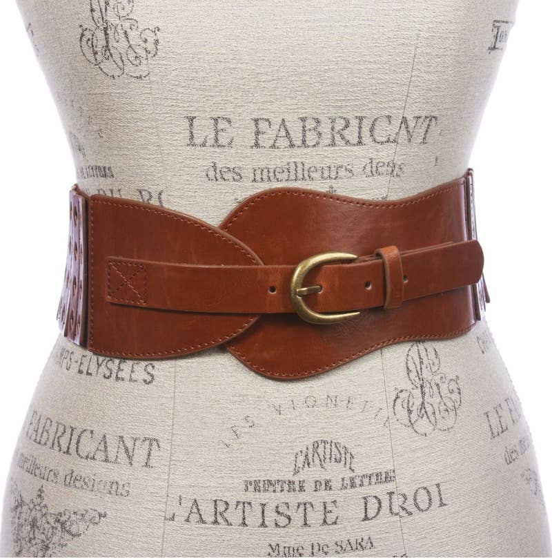 7. A wide waist belt with elastic in the back to make getting dressed a ~cinch~ — and not feeling constricted all day long. And the elastic in the back is covered with the same faux leather as the front for a more polished look!