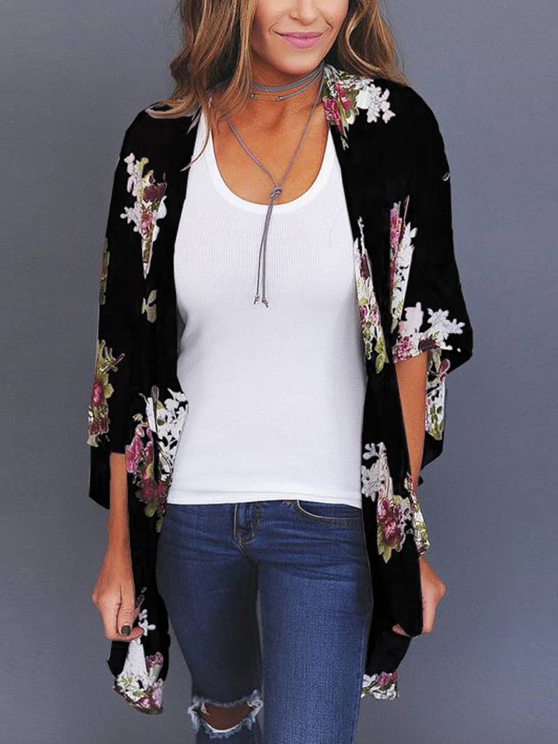 26. A breezy duster cardi in a floaty floral print that’ll work as a layering piece in your freezing office or as a beach coverup.